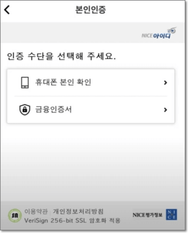 6) 휴대폰 본인인증이나 금융인증서 중 편한 방식으로 인증을 해줍니다.