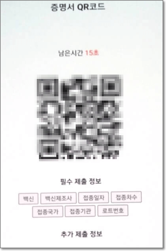 9) 이제 다음과 같이 최근 접종 증명서까지 발급받으면 끝난 겁니다. 해당 화면을 누르면 QR코드가 나오는데 이 화면을 식당이나 카페 등에서 스캔을 해주면 됩니다.