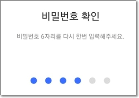 4) 쿠브 앱을 실행할 때 사용할 비밀번호 6자리를 설정해줍니다. 지문인식을 지원하는 휴대폰이라면 지문인식이 더 간편합니다.